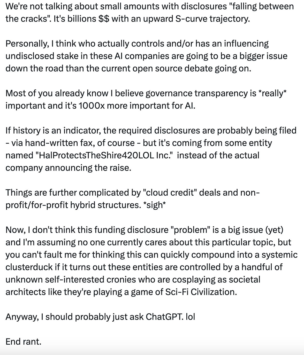 Notably, Greg Brockman also stepped down as the Chair of the Board — implying governance issues at the board-level. There also appears to be grievances from the board in terms of Sam’s communications — enough so where he is fully out at the company rather than stepping down into another role like Chairman: