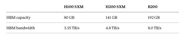 Each generation buys more bandwidth, but the underlying architecture is still HBM-fed tensor cores. Decode still loads the full weight matrix from external memory for every token.